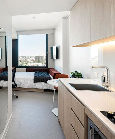มีให้เลือกทั้ง อพาร์ตเมนต์แบบแชร์สองห้องนอน และ สตูดิโอส่วนตัว คุณสามารถเลือกได้ตามไลฟ์สไตล์ในแบบของคุณเอง พร้อมกับสิ่งอำนวยความสะดวกส่วนกลางสุด ไม่ว่าจะเป็น ฟิตเนส พื้นที่อ่านหนังสือ และลานกลางแจ้ง